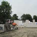 De vorige avond had een shovel de voormuur en het nieuwe achterstuk nog omgeduwd en was over de puinzooi heen gereden.